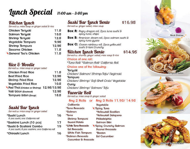 Sushi Bar Entree/Roll Combo/Entrée from the Kitchen